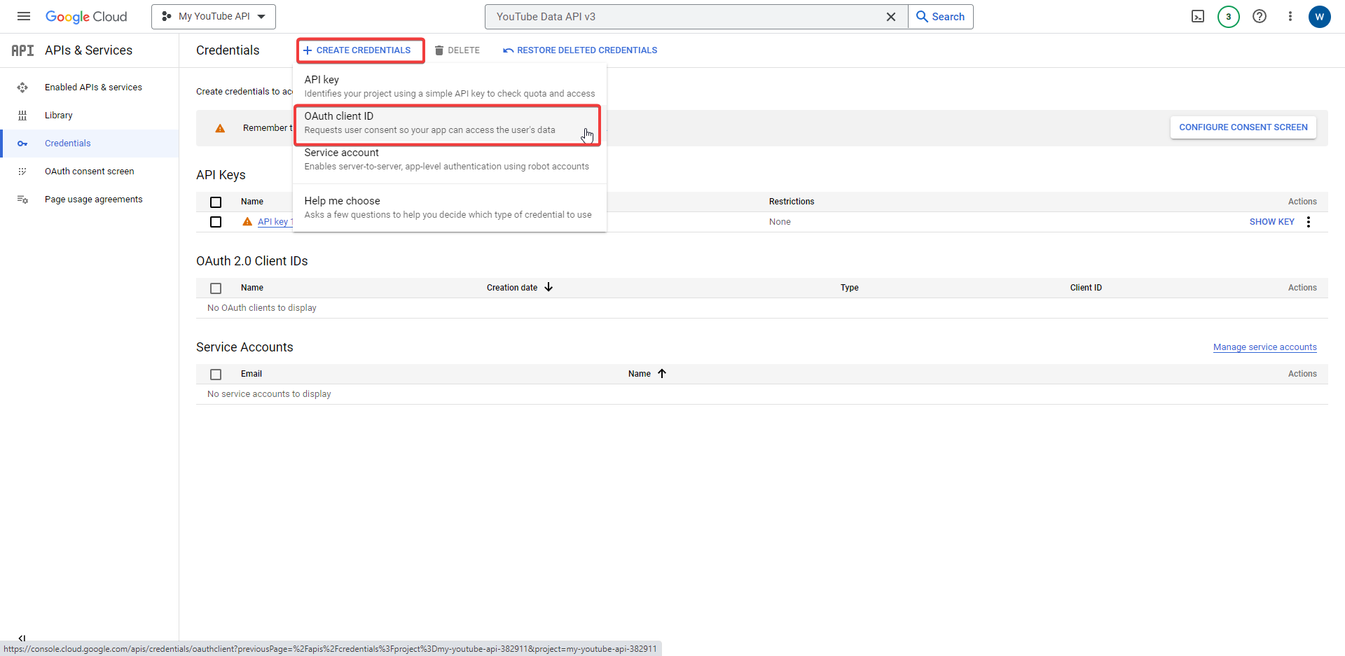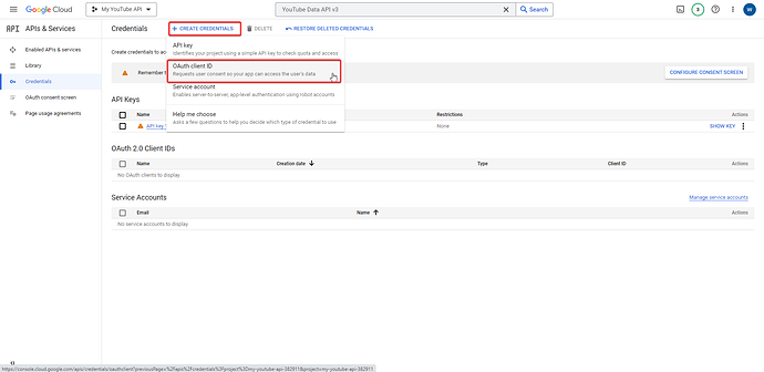 Select + CREATE CREDENTIALS > OAuth client ID.