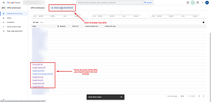 Enable each Google service API that you want to use: