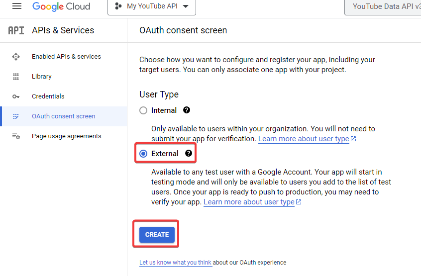 Optional: If you haven’t used OAuth in your Google Cloud project before, you need to configure the OAuth consent screen. Expand the detailed steps below for more guidance: a. Select OAuth consent screen.