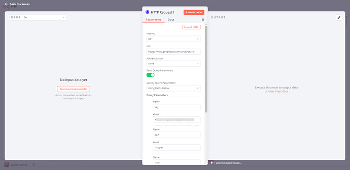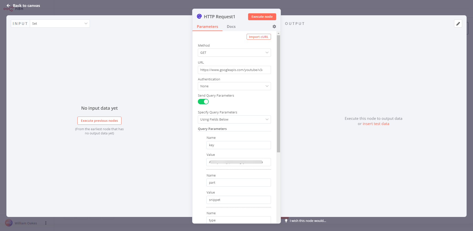 Adding the YouTube API to an HTTP Request Node in n8n: