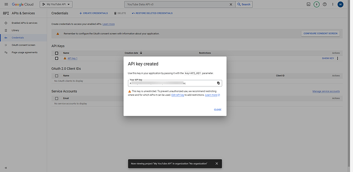 - key: Set the value to your YouTube API key obtained in step 7 of the first section.