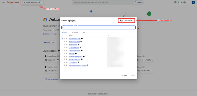 Select your project or create a new one by clicking on the “Select a Project” dropdown menu in the top navigation bar. -